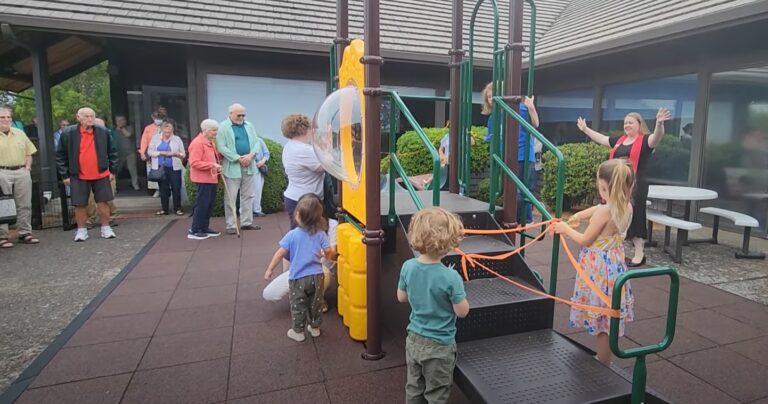 Due to a generous grant from Cascadia Grants & Loans, the extension society that supports United Methodist Churches in the Cascadia District, Newberg First UMC was able to purchase a commercial-grade playground piece for the courtyard geared for 2-5 year olds. This purchase was part of a larger effort to improve our youth and children’s program, which included the hiring of a Nursery Teacher and Sunday School Teacher in the fall of 2024 and a revamp of the Community Room where the youth group meets. The playground equipment and rubber tiles were installed in summer 2025, and the congregation held a consecration and ribbon-cutting on August 3rd. Each kiddo present got their own scissors and ribbon to cut!